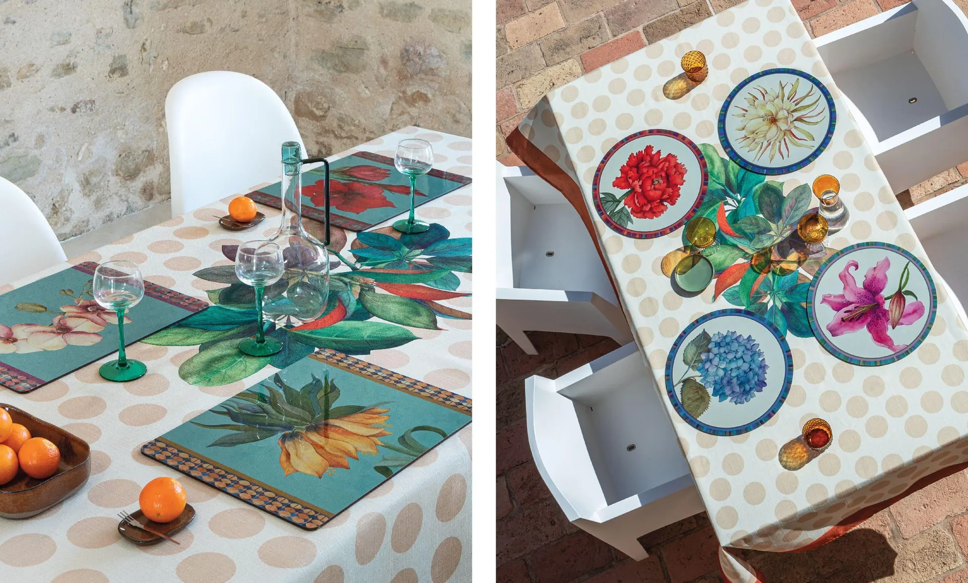 Usate sia per decorare la tavola, sia per rendere più pratico e funzionale l’esperienza del dining in terrazzo, aiutano a creare superfici sempre diverse in cui il piacere della convivialità è in simbiosi con lo spirito dinamico degli ambienti esterni.