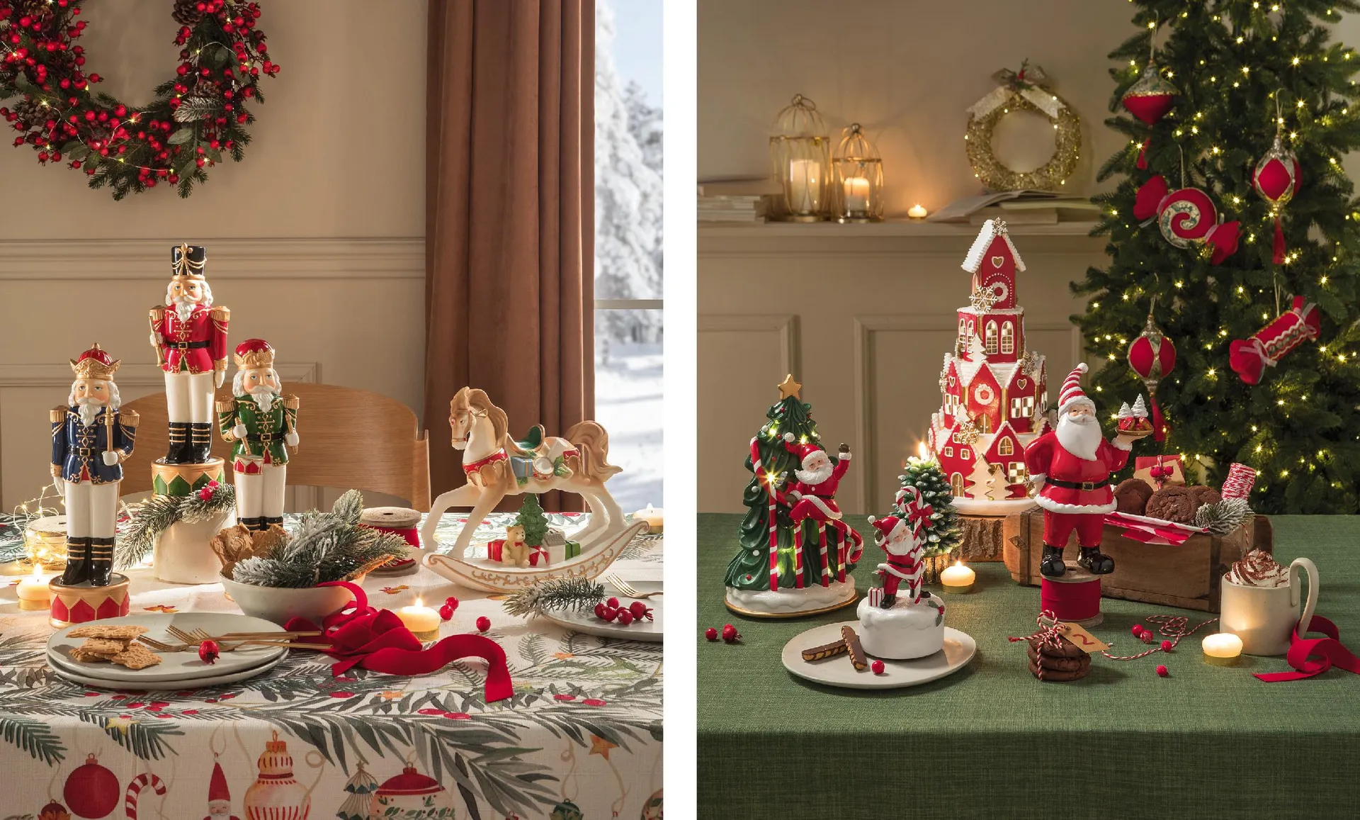 Per abbellire la tavola natalizia, poi, sono perfetti oggetti decorativi che catturino lo spirito delle festività: Babbo Natale, con il suo sorriso gioioso, i soldatini in tenuta da parata, le casette di Natale e gli alberi addobbati diventano possono diventare protagonisti della tua storia a tavola.