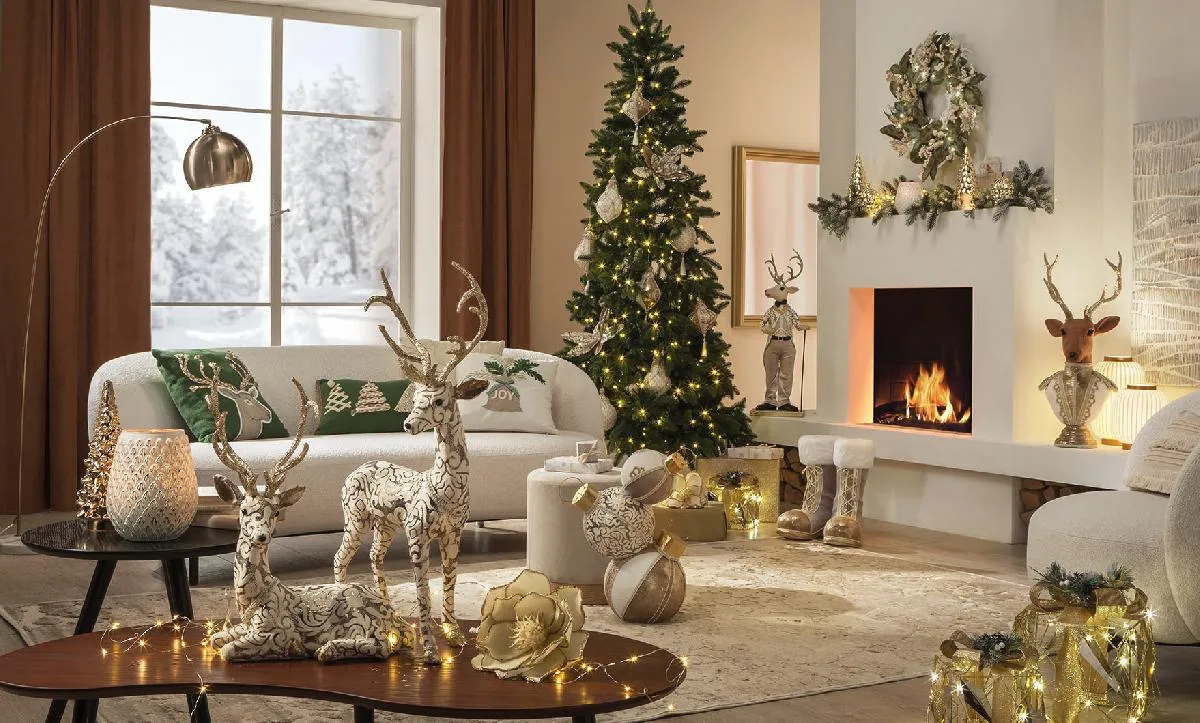 Immaginati immerso in un bosco incantato, dove gli alberi si vestono di luce dorata e argentea, e creature leggendarie prendono vita con la magia del Natale.