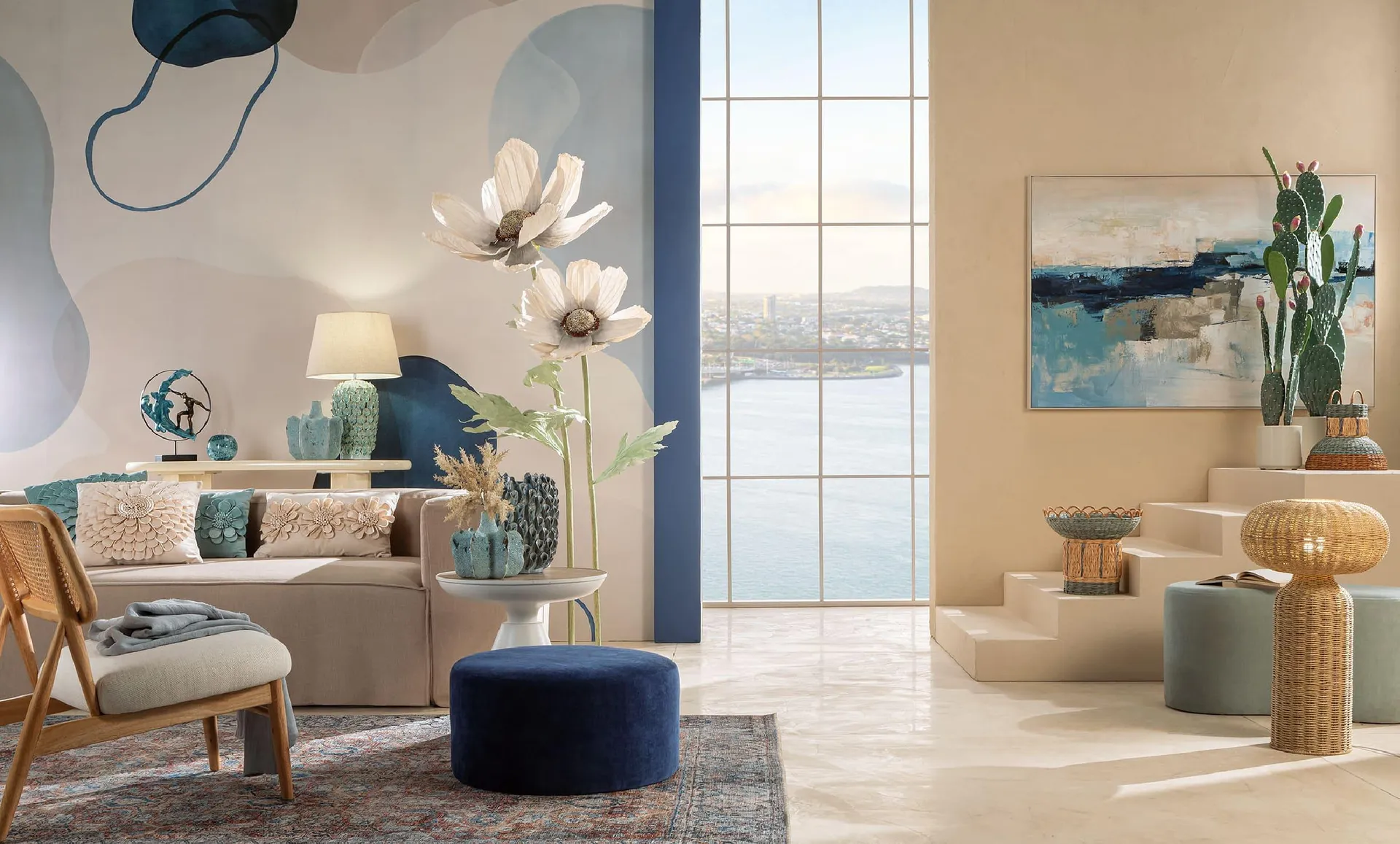 Lo stile Orizzonti trae ispirazione dalla luce e dalle sfumature dei paesaggi naturali, portando negli interni tonalità capaci di creare profondità e suggestioni mediterranee.