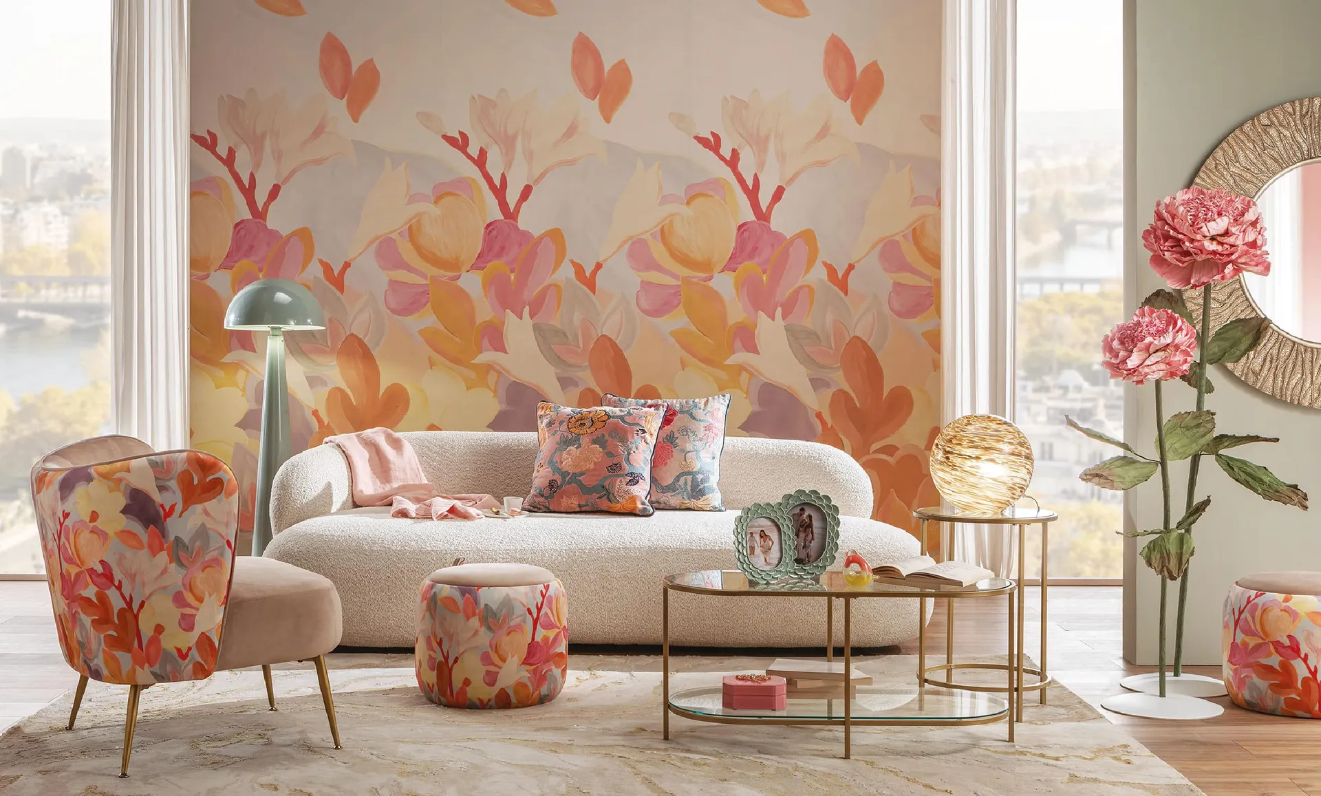 Protagonisti sono i materiali che catturano la luce come metalli galvanizzati, vetri lavorati e superfici laccate, accostati a tessuti preziosi e palette cromatiche decise. Ogni oggetto è scelto per la sua capacità di farsi notare, trasformando il soggiorno in uno spazio sofisticato e vibrante, dove il design dialoga con l’alta moda.