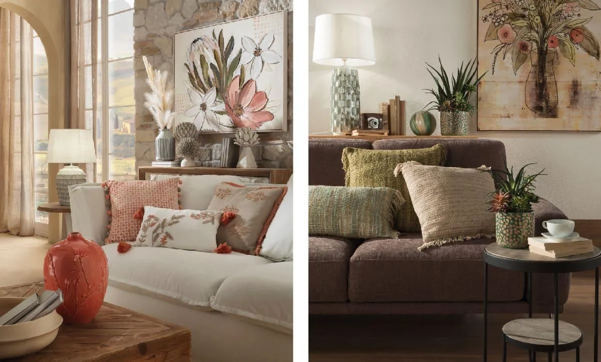 Stoffe a trama grossa, texture materiche e colori caldi ispirati alle tonalità del paesaggio (come il nocciola, l’arancio e il crema) rendono questi complementi il trait d’union per tutta la casa, accessori che hanno l’onere di raccordare visivamente gli ambienti.
