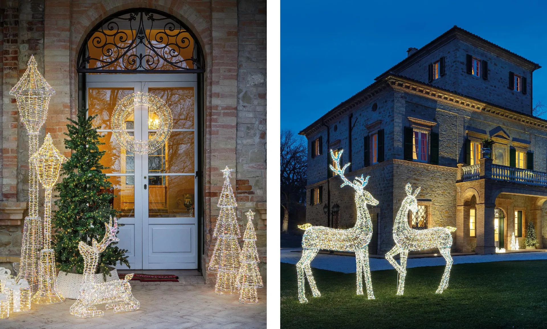 In questo articolo abbiamo raccolto idee e suggerimenti per scegliere le luci di Natale da interno ed esterno. Dal living al camino, dal tavolo al corridoio, fino a portici, giardini e balconi,ti aspetta un vademecum d’autore per combinarle con equilibrio... e lasciare che la sera accenda la magia.