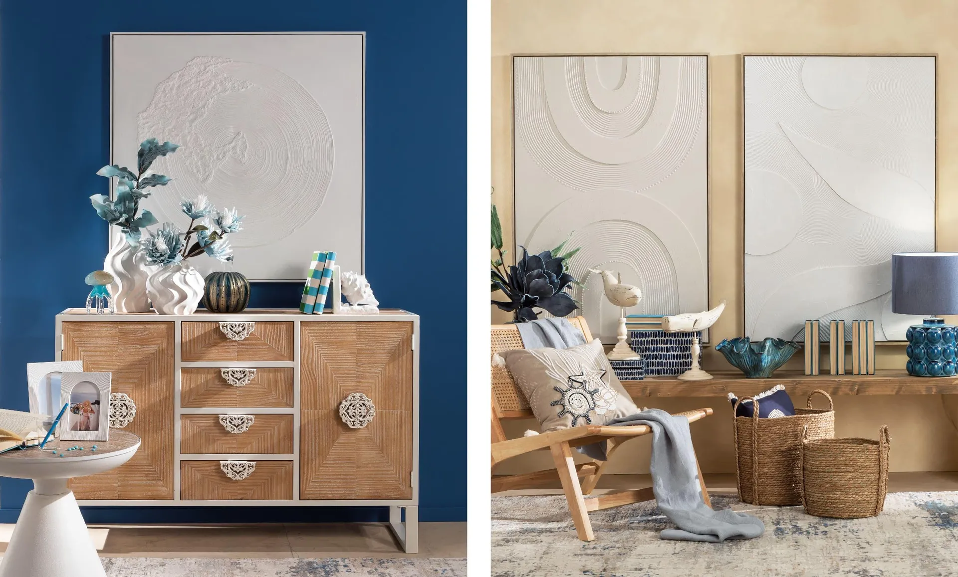 Questi quadri, con le loro narrazioni visive e le loro texture affascinanti, non sono semplici decorazioni, ma veri e propri protagonisti dello spazio, capaci di evocare le sensazioni di pace e serenità associate al mare. Così, ogni opera contribuisce a creare un ambiente unico, dove l’eleganza si intreccia con l’armonia naturale e ogni dettaglio parla di raffinata sensibilità estetica. Onda, dopo onda.